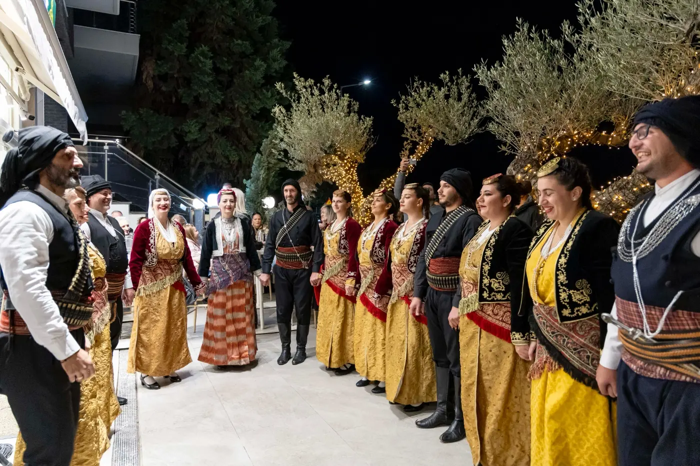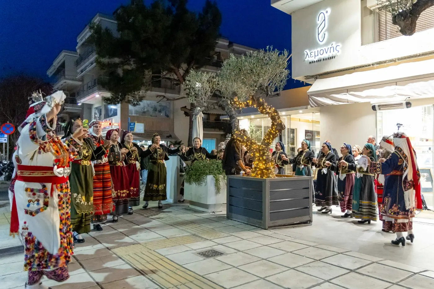 In between, an open event on the customs and traditions of Pylaia was held, featuring the revival of local rituals. Members of “Kapoutzida,” dressed in their traditional attire, demonstrated, among other things, how to make the kefalodesmos (traditional headpiece), while singing local Pylaia songs.